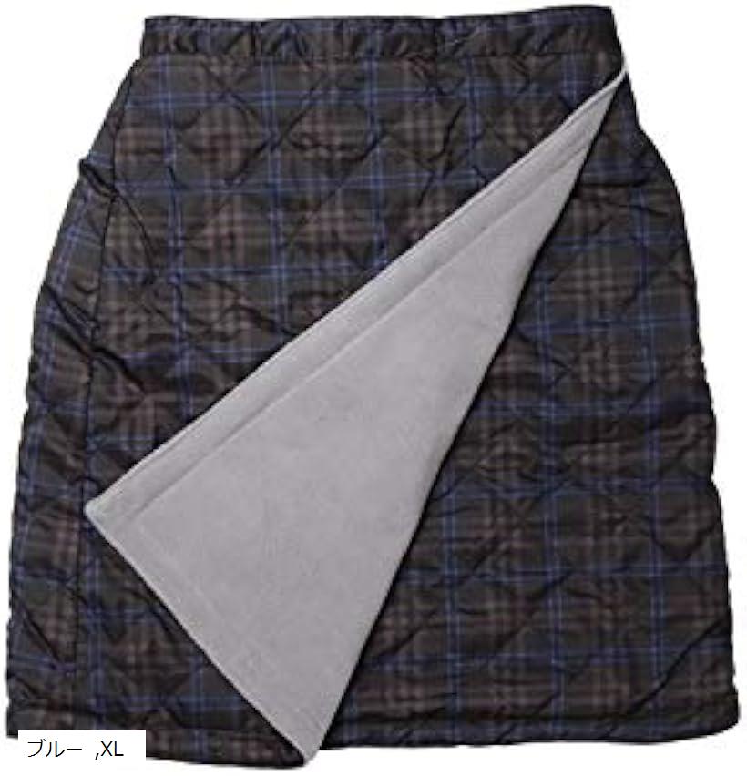 裏起毛 巻き キルトスカート 防寒スカート ひざたけスカート ダウン 膝丈 ひざ丈 大きいサイズ レディース(ブルー, LL)