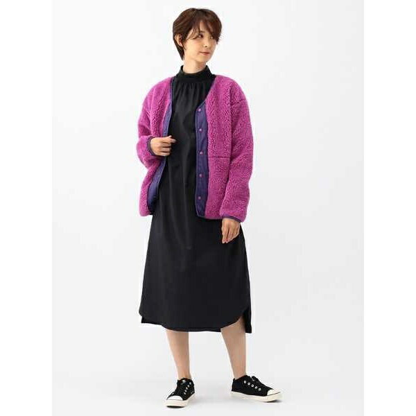 ゆったりしたシルエットをコンパクトなリブカラーが整えます。
